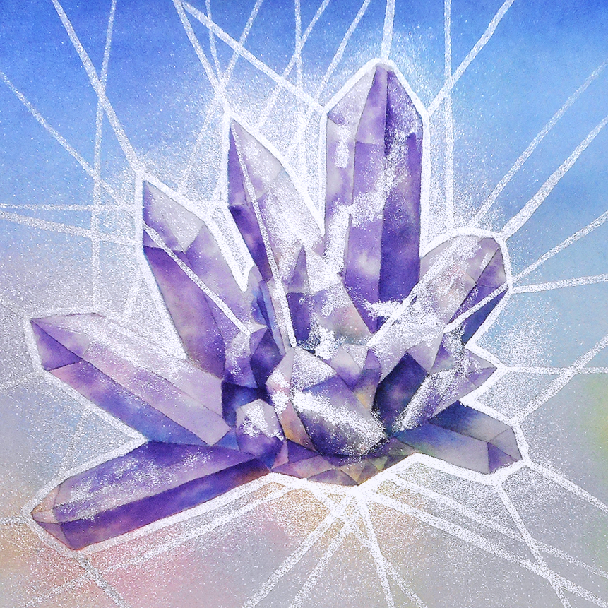 Upon entering the dream land, you may find yourself traveling through an amethyst. In this amethyst, reality shifts and bends, and you can shrink down to the tiniest atom or grow larger than the crystal itself. Suddenly, you can move in between the dimensions of the seen world. Flying through the crystalline structures that shift and change beyond comprehension, you are dazzled by the enchanting ocean of royal purple, lavender, deep mauve, and icy violets. Throughout the amethyst are sparkles of gold and rutilated metals. You follow these metallic lines, and they lead you through the labyrinth of fractal formations and galaxies of stardust, like wandering through different cities on an archipelago of gemstones. It is a land beyond time and space. Welcome to the mesmerizing world of crystal traveling.